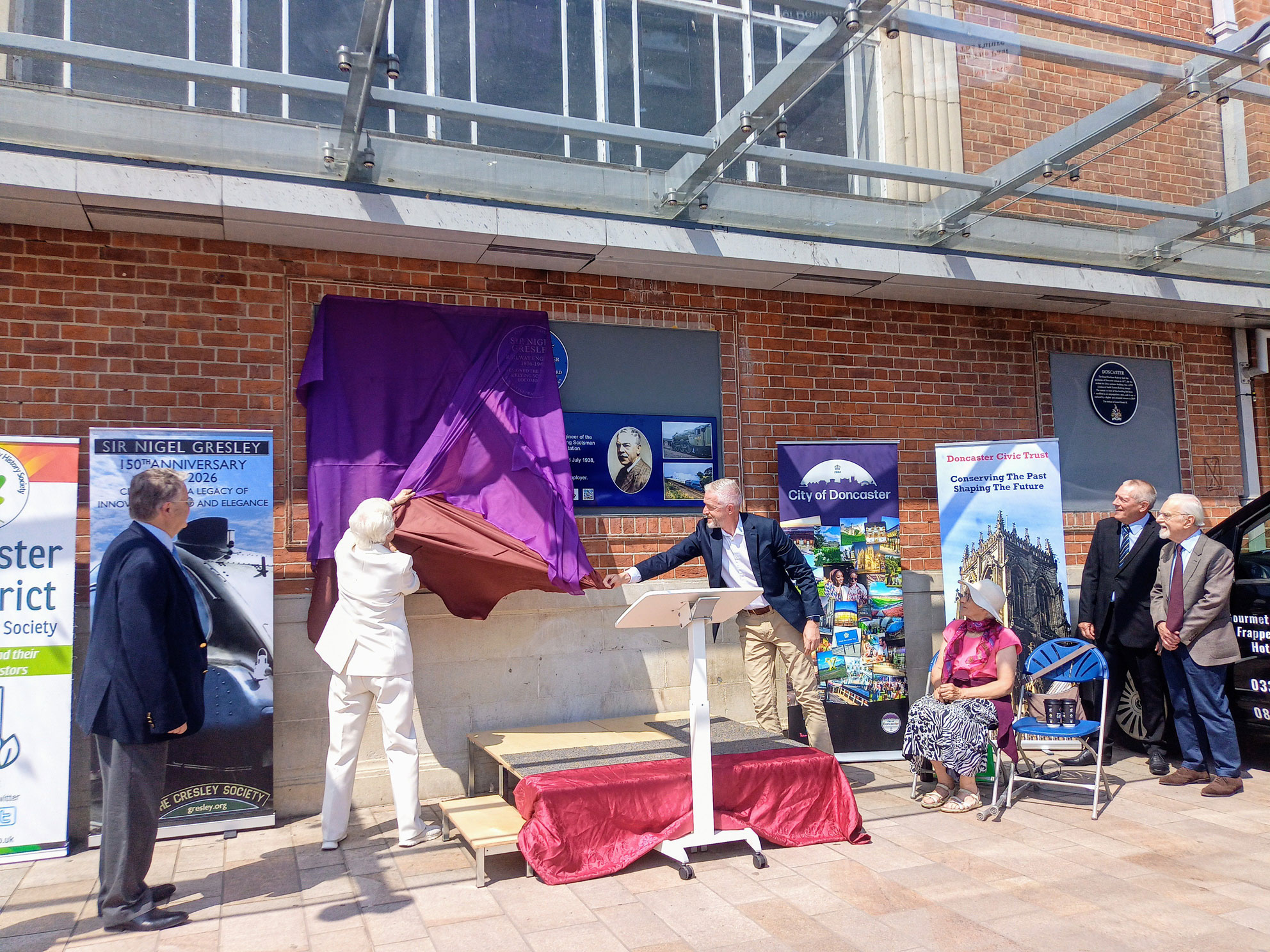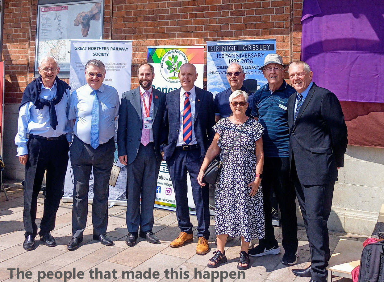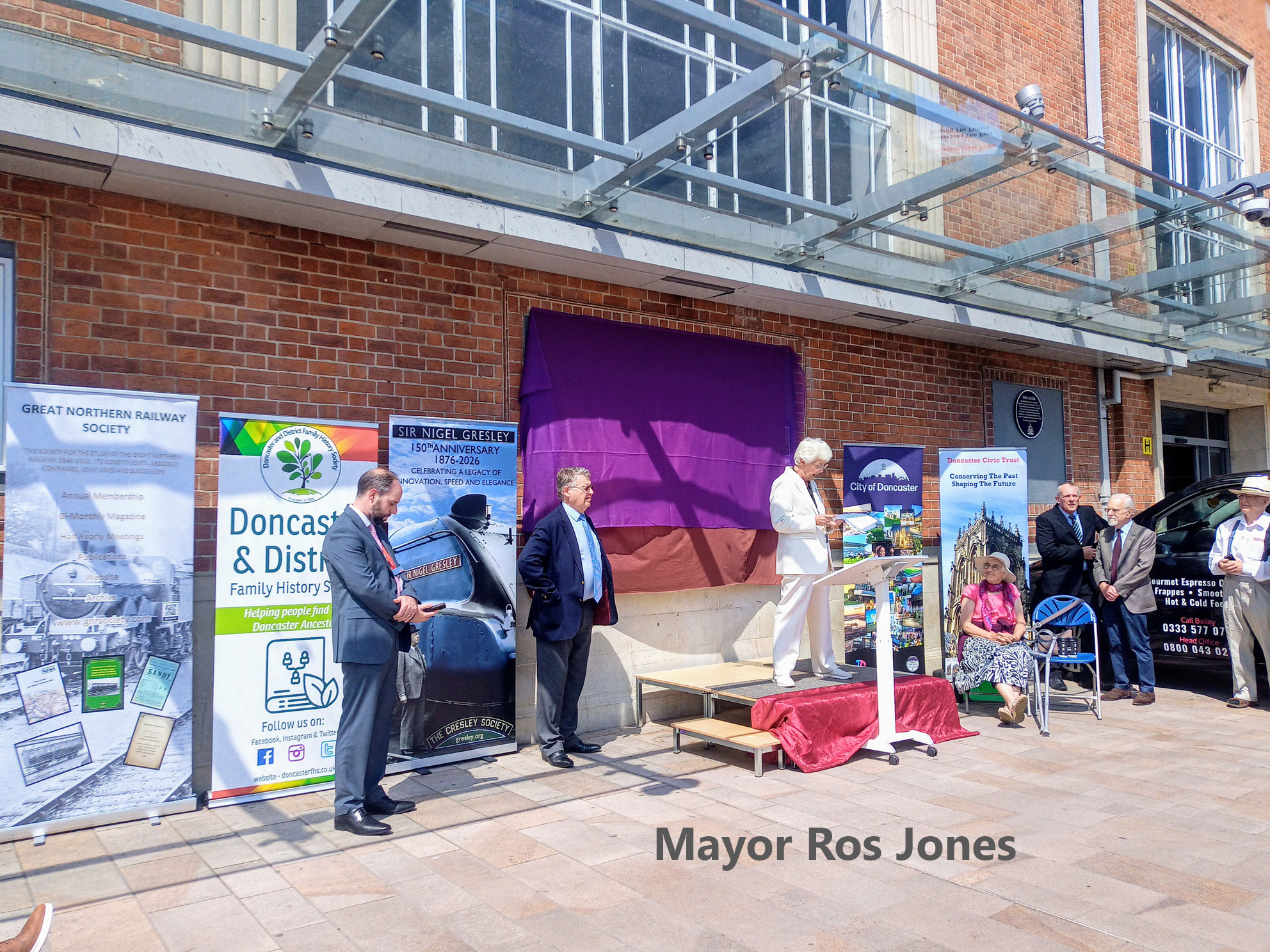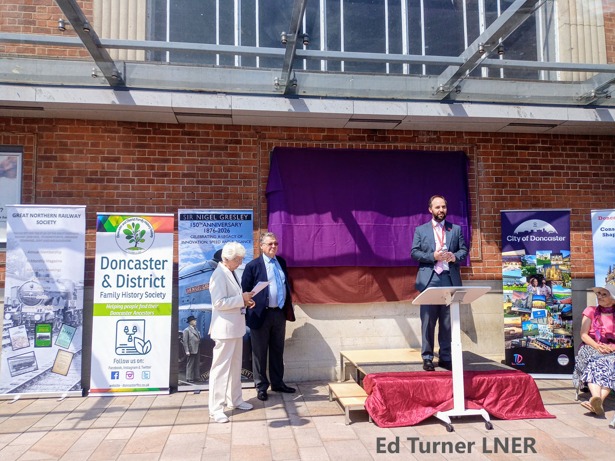 Today this was corrected and a plaque and information board were unveiled by Mayor Ros Jones at Doncaster Railway Station forecourt.